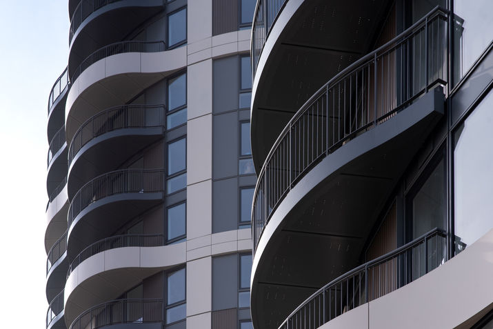 Working with sustainability and material efficiency in mind, Alloy Fabweld used ecodek® composite decking for the balcony floors. This choice allowed for tailored lengths ranging from 7 metres to just under 2 metres, minimising site waste and enhancing build precision. In a project where circular and curved design demanded absolute accuracy, the ease of cutting and finish of the ecodek® boards proved a clear advantage. Any offcuts were proactively repurposed, with ecodek® purchasing back the waste and recycling it into new product, demonstrating a genuine commitment to circular construction.